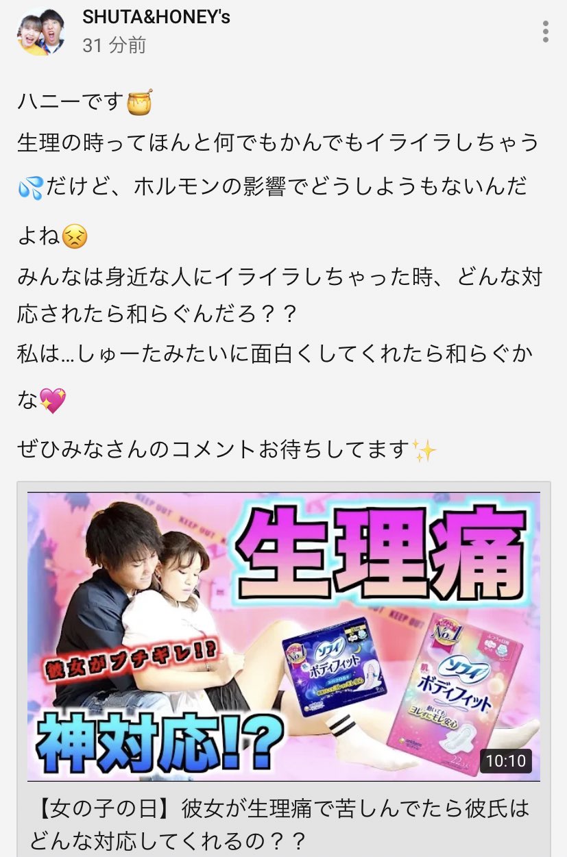 ハニーちゃん 女の子の日 彼女が生理痛で苦しんでたら彼氏はどんな対応してくれるの T Co Zgieu9b2ck Youtubeより